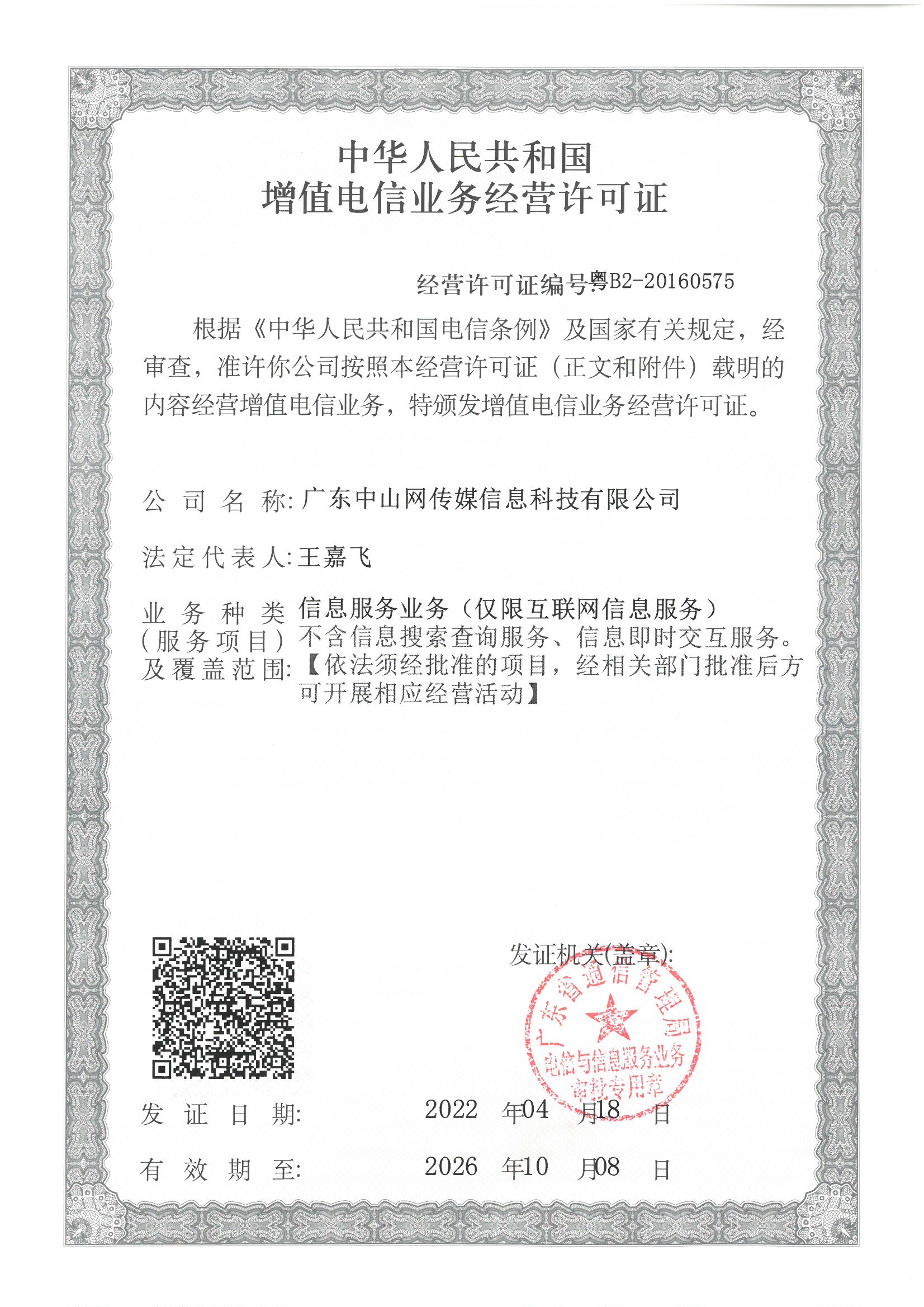 | 增值電信業(yè)務(wù)經(jīng)營(yíng)許可證: